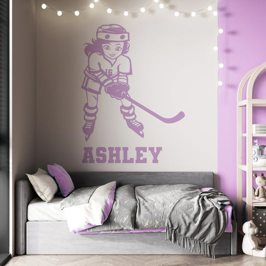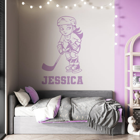 Personalized Ice Hockey Wall Decals - Anime Hockey Wall Stickers for Girls' - Hockey Wall Clings, Murals, and Vinyl Decals - Anime Hockey Girls Team Decals