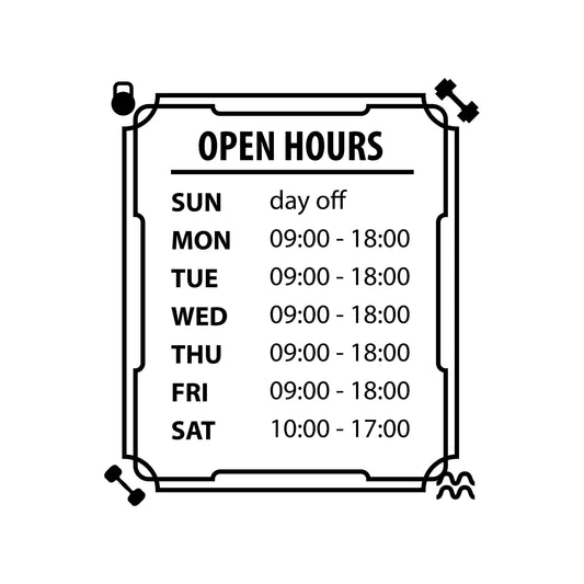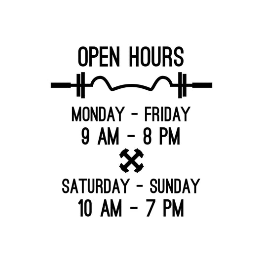 Gym Vinyl Sticker Decal - Open Closed Door Vinyl Decal - Gym Working Hours Decal - Operating Hours of Company Window Decal