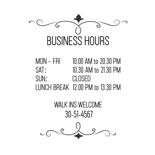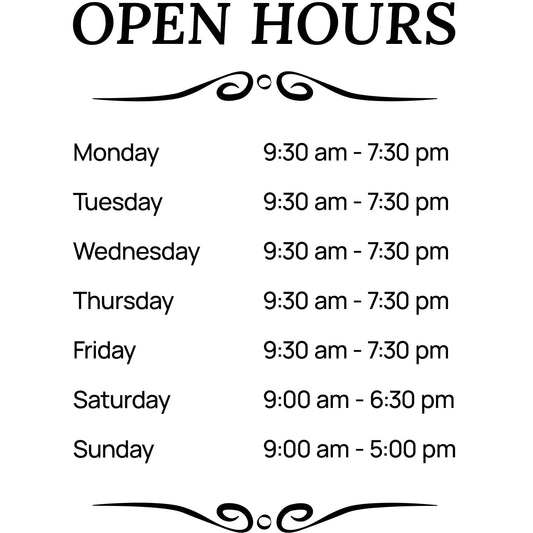 Vinyl Sticker - Business Hours Vinyl Decal for Store Front - Business Open Hour Signs - Custom Vinyl Opening Times Decal