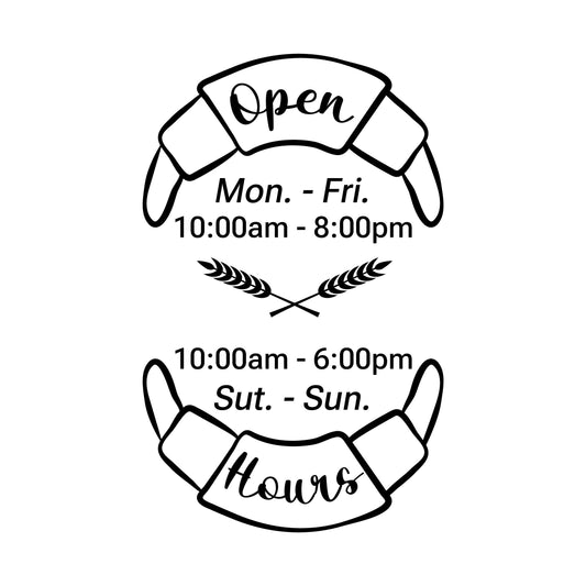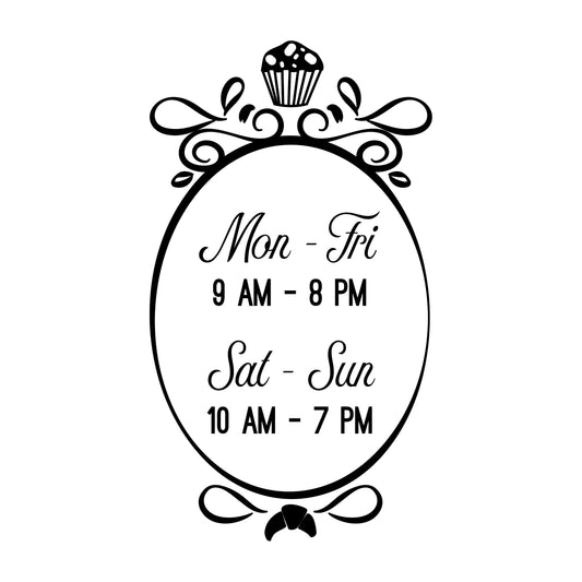 Decal for Pastry Shop Windows - Storefront Decal with Circle Hours of Operation - Pastry Shop Front Signs - Custom Business Hours Sign