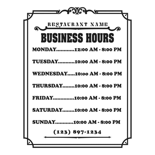 Business Hours Window Decal - Custom Company Name and Business Hours Door Sign Decal