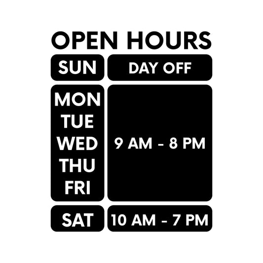 Storefront Hours Sticker - Business Day Off Window Decals - Business Hour Decal Vinyl - Open Hour Graphic Sticker for Windows