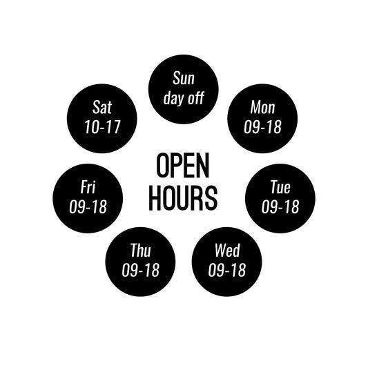 All of our products are made in the USA. Our stickers are cut and prepared for easy application.We use waterproof, UV-resistant, self-adhesive vinyl that can be applied to any smooth surfaces. Put a Business hours decal on your walls, doors, windows and other surfaces.