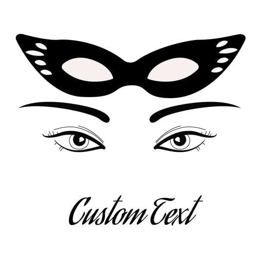 Wall Sticker Eyes with Carnival Mask and Custom Text - Great for Beauty Salon and Girls Room - Wall Sticker for Makeup Studio