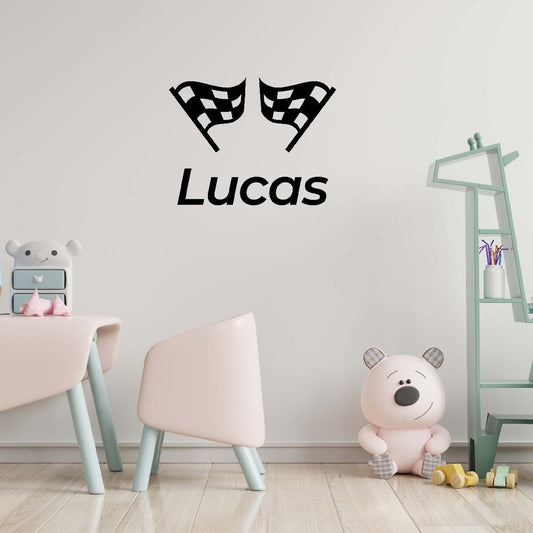 Personalized Name Stickers with Start Finish Flags - Easily-Applied Name Decals for Walls Furniture Laptop - Stunning Custom Name Stickers for Kids Bedroom