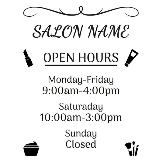 Salon Name Vinyl Sticker for Glass - Working Operating Hours Decal - Salon Front Signs - Business Vinyl Sticker - Store Hours Graphic