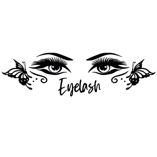 Wall Decal Butterfly eye and eyebrow with your text, name - personalized sticker for beauty salon - wall sticker for bedroom