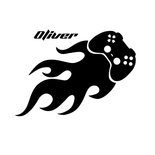 Personalized Wall Sticker - Burning Controller - Wall Decal For Teens Room - Vinyl Decals With Custom Name