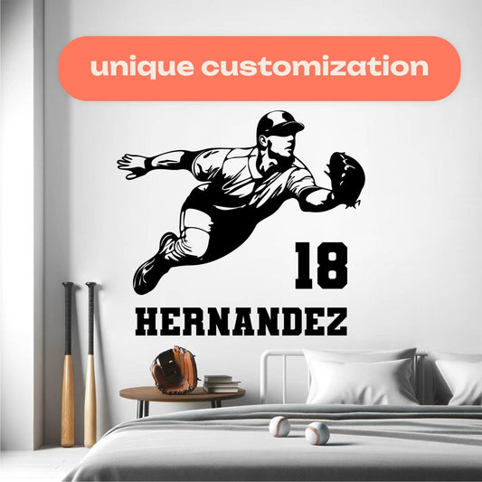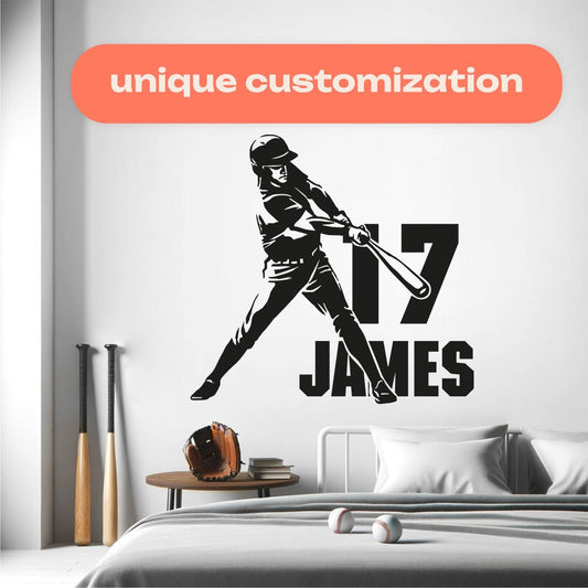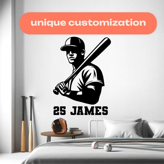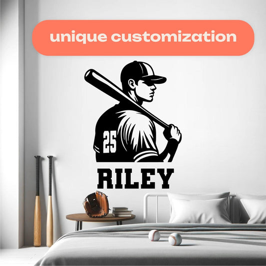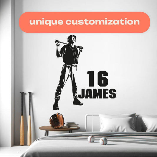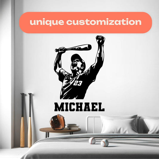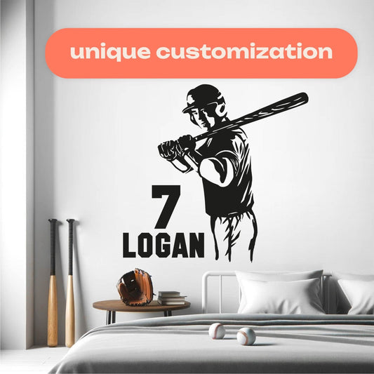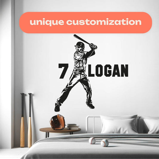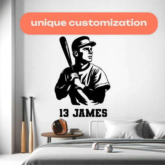 Baseball Decals for Boys Room - Boy Room Decals for Wall - Baseball Wall Mural - Custom Baseball Player Wall Decal - Personalized Baseball Wall Decal
