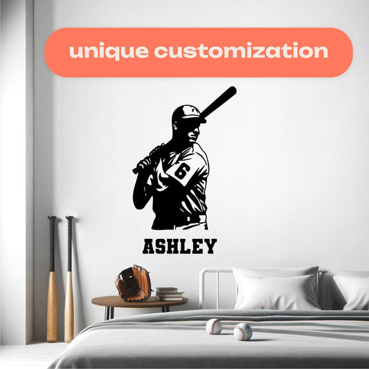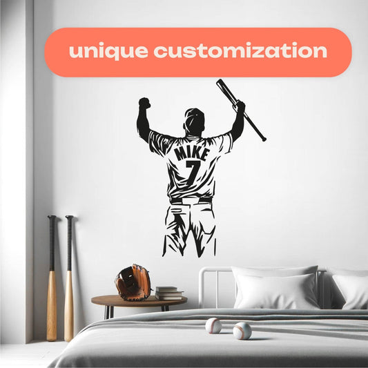 Custom Baseball Player Wall Decal - Personalized Baseball Name Decal for Wall - Personalized Baseball Wall Stickers Bedroom