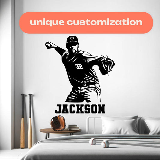 Personalized Baseball Player Wall Decal - Baseball Pitcher Wall Decal - Baseball Bat Wall Decal - Custom Basebal Wall Decal - Custom Baseball Name Wall Decal