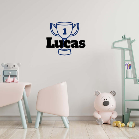 Personalized Name Stickers with Cup Trophy - Waterproof Custom Name Stickers for Furniture Laptops Doors - Reliable Name Wall Decals for Kids Bedroom - Name Decal