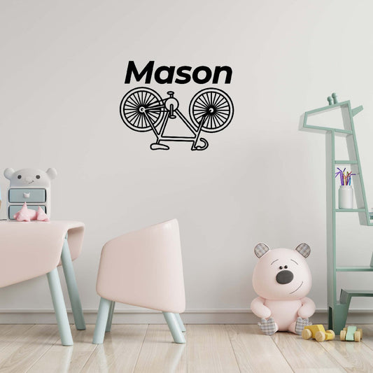 Personalized Name Stickers with Bicycle - Waterproof Custom Name Stickers for Kids Bedroom - Easily-Applied Name Decals for Walls Doors Laptops - Reliable Name Decal