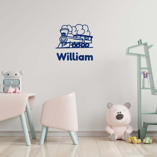 Personalized Name Stickers with Locomotive - Fade-Resistant Custom Name Stickers for any Kids Bedroom Decor - Removable Name Decals for Walls Furniture Laptop