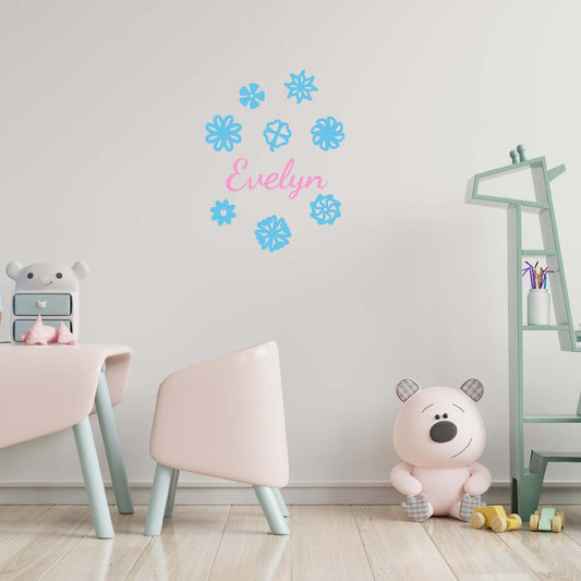 Personalized Name Stickers with Cute Flower - Easily-Applied Custom Name Stickers for Kids Bedroom Laptop Furniture - Durable Name Wall Decals for Girls and Boys