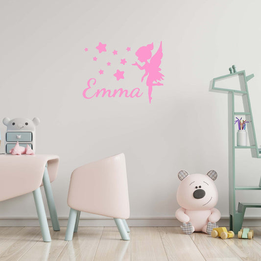 Personalized Name Stickers with Fairy and Stars - Durable Custom Name Stickers for Furniture Laptops - Unique Name Wall Decals for Girls and Boys - Cute Name Decal