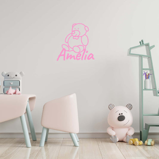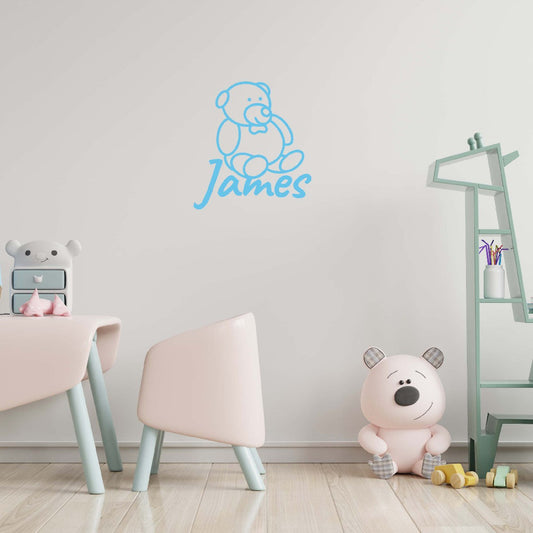 Personalized Name Stickers with Teddy Bear - Easily-Applied Custom Name Stickers for Kids Bedroom Laptop Furniture - Lovely Name Wall Decals for Girls and Boys