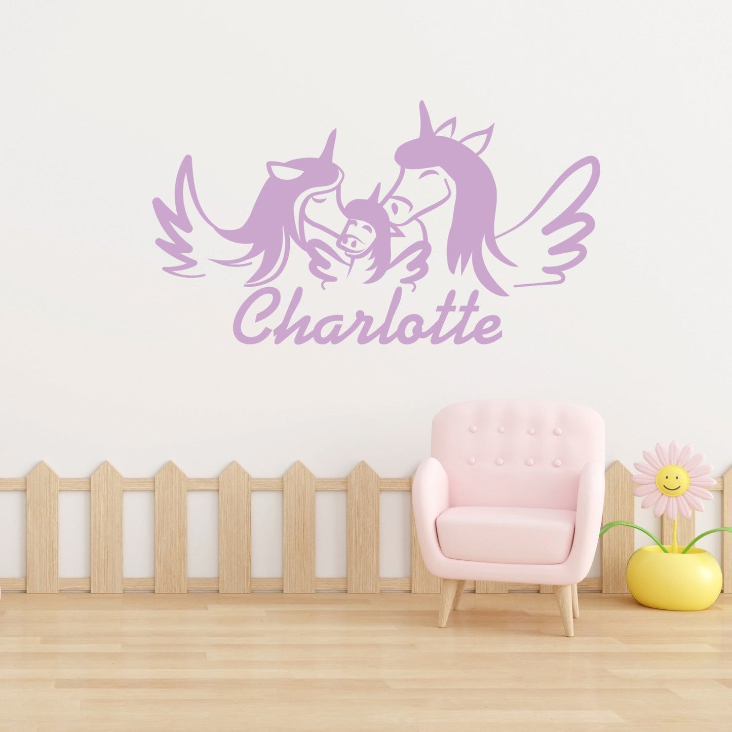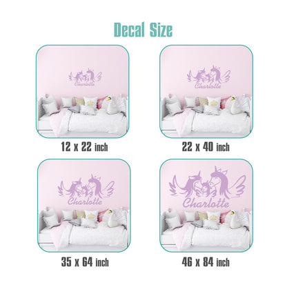 Personalized Unicorn Family Wall Decals - Baby Unicorn Wall Decal Vinyl Stickers Featuring Customizable Name - Transform Any Room with Whimsical Unicorn Designs for Magical Family Ambiance